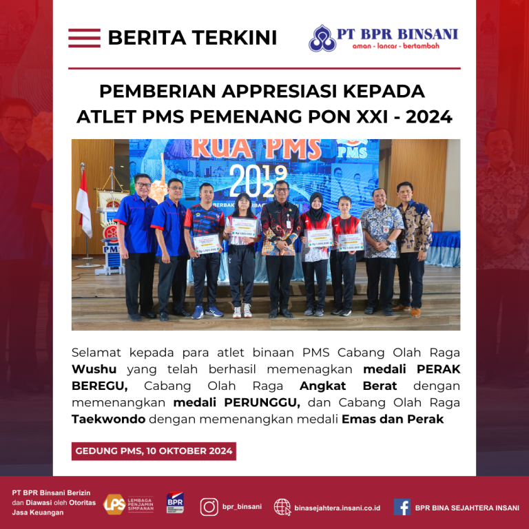 PT BPR Bina Sejahtera Insani (PT BPR BINSANI) – mendukung Atlet Binaan Perkumpulan Masyarakat Surakarta (PMS) yang telah menjadi Pemenang PON XXI –  2024